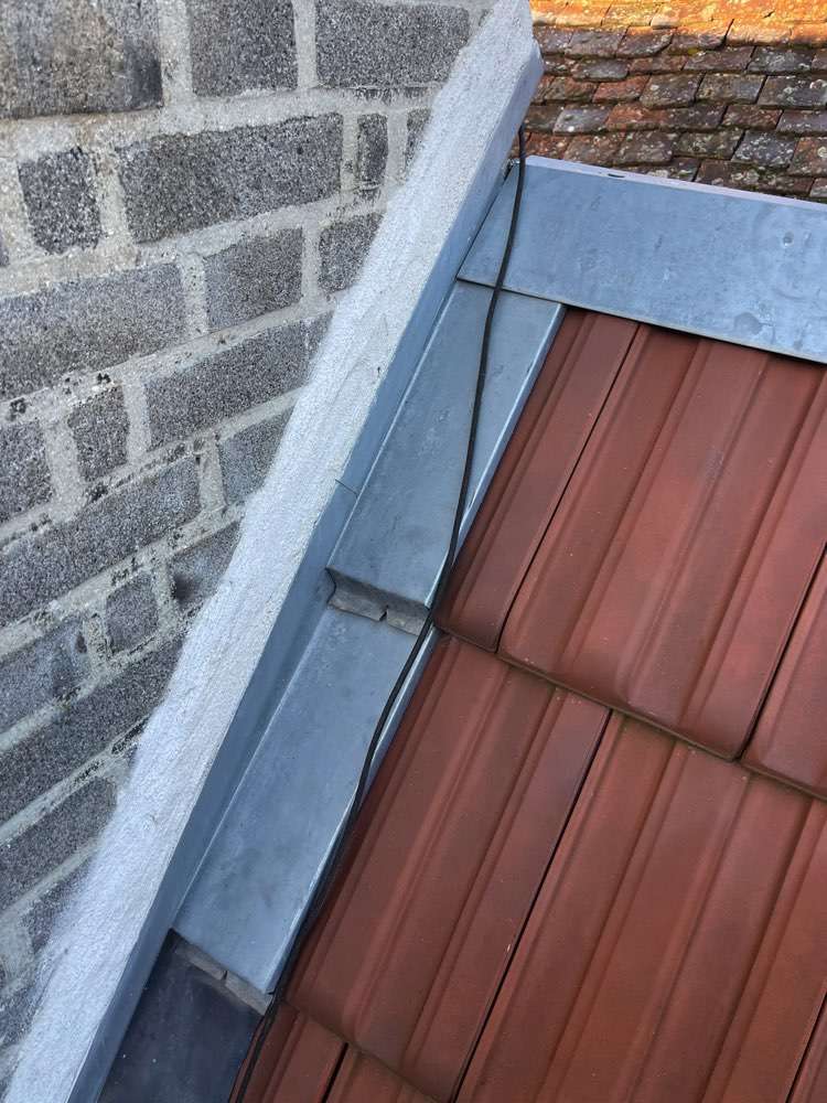 Parallèlement, j’ai réalisé un hébergement de cheminée en zinc pour assurer une finition propre et étanche autour de la cheminée. Cette intervention prévient les infiltrations d’eau à la base de la cheminée et contribue à la protection globale de la toiture.