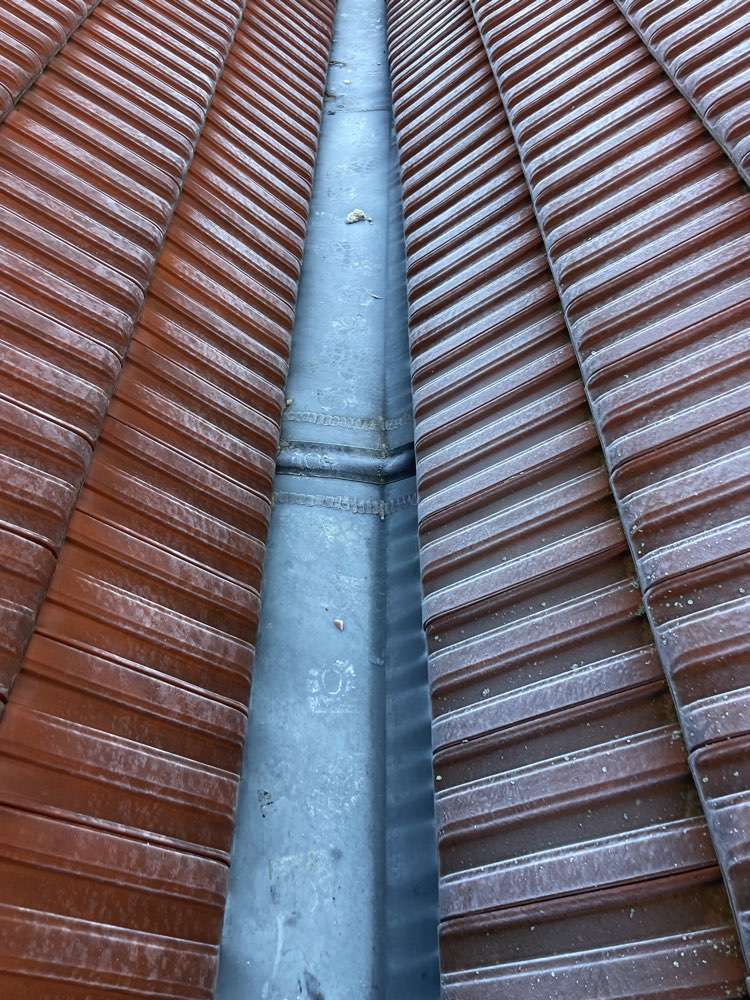 Une fois les chéneaux façonnés, je les ai installés en veillant à assurer une parfaite étanchéité avec la toiture en tuiles PV13. Les joints de dilatation permettent d’absorber les mouvements du matériau sans risque de fissuration ou de fuite. L’ensemble a été solidement fixé pour garantir une évacuation efficace des eaux pluviales.